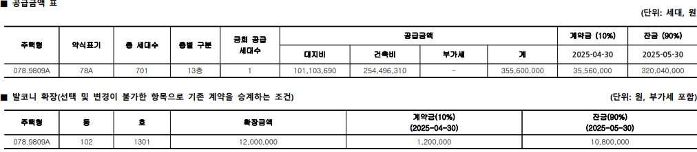 | 계약금 (10%) | 2025년 4월 30일 (수) |