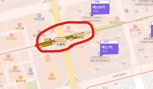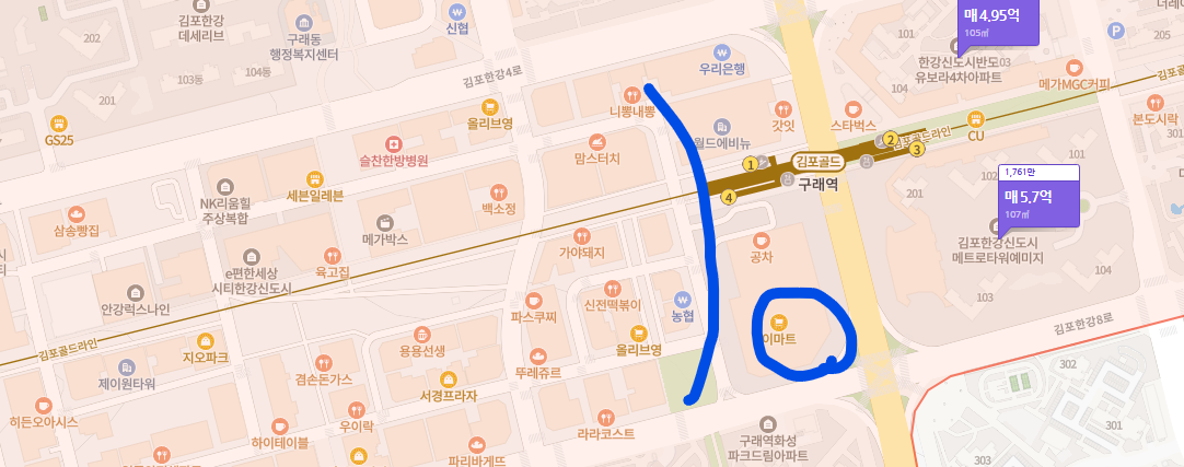 | 김포골드라인 구래역 | 아파트 단지와 구래역 3번출구와 맞닿아 있는 초역세권 |