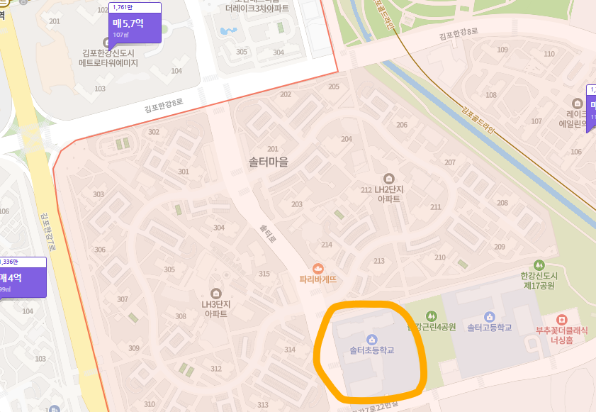 - 배정 초등학교는 솔터 초등학교이며 단지로부터 도보 8분 거리에 있습니다.