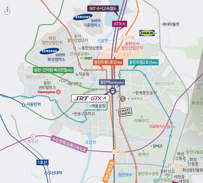 ✅ 교통: GTX-A, 동인선(예정), SRT, 동탄 트램 등 다중 교통망