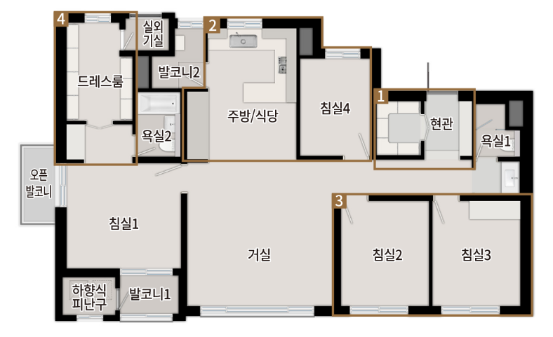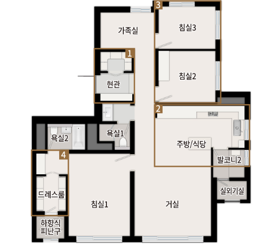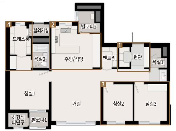 | 84㎡ | A/B/D | 1,107세대 | 4Bay 구조, 팬트리, 드레스룸 |