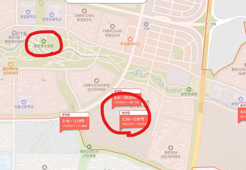 동탄 2 신도시 내 경쟁 분양 단지