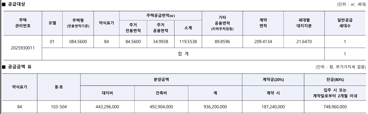 - 공급 세대수: 계약 취소 주택 (전용 84㎡), 사후 접수 (전용 69㎡)