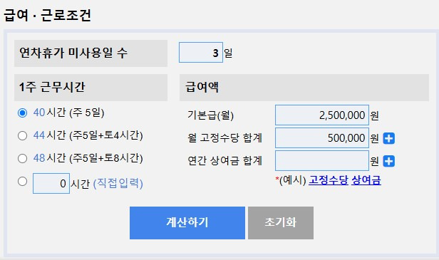 연차수당 계산기는 매우 간단합니다. 본인의 기본급, 고정수당, 근무시간, 남은 연차수만 입력하면 자동으로 계산됩니다. 연차수당 계산기를 이용하면 복잡한 계산 없이 손쉽게 수당을 확인할 수 있습니다.