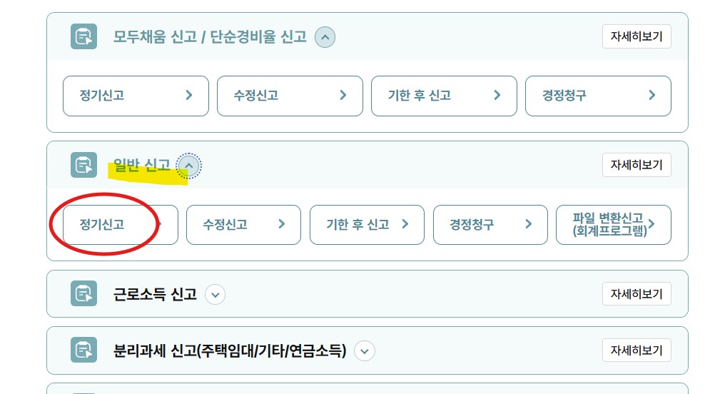 - 일반신고 또는 모두채움에서 정기신고 선택