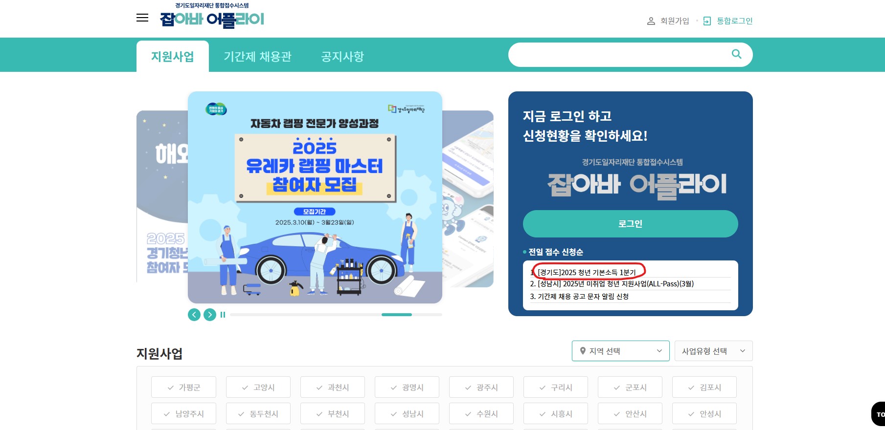 - 잡아바 어플라이 통합 접수 시스템 접속